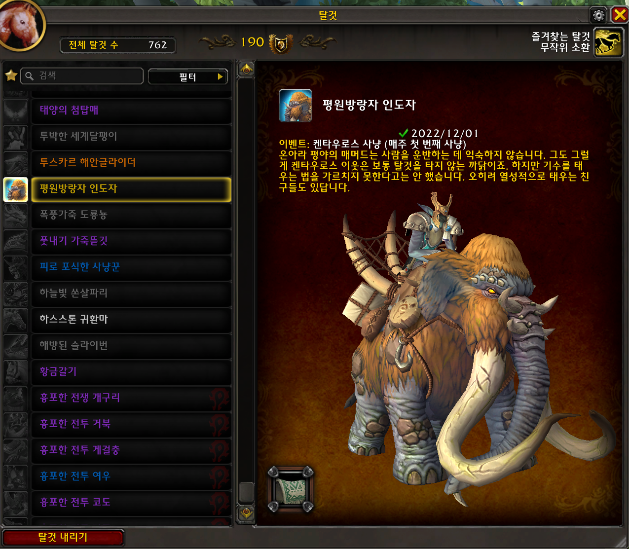 2022.12.01 평원방랑자 인도자 획득 762번째 탈것