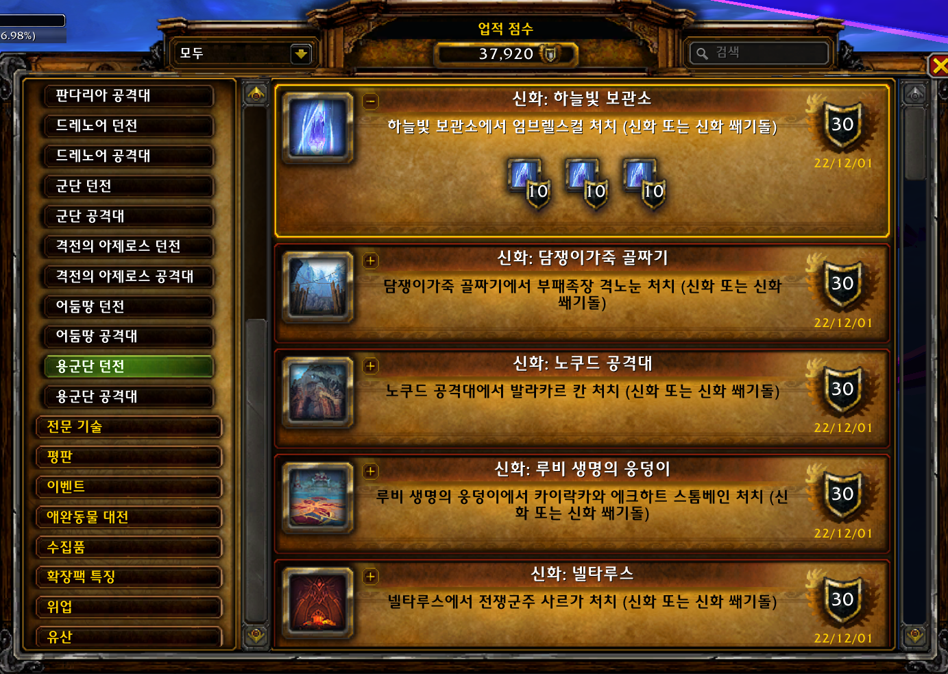 | [와우업적]공격 준비 완료 VIII (0) | 2022.12.01 |