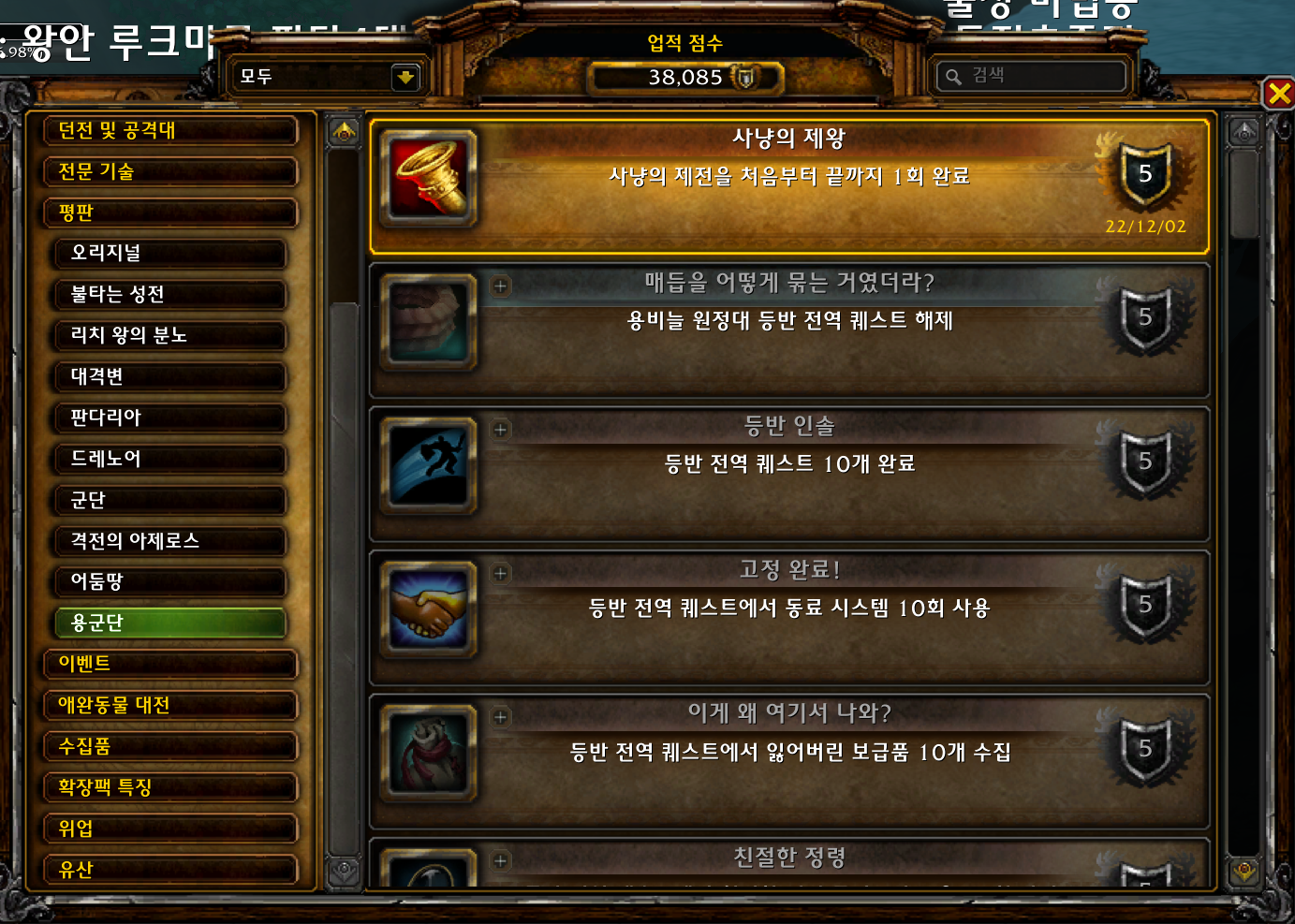 2022.12.02 사냥의 제왕 획득 5점짜리 38085점
