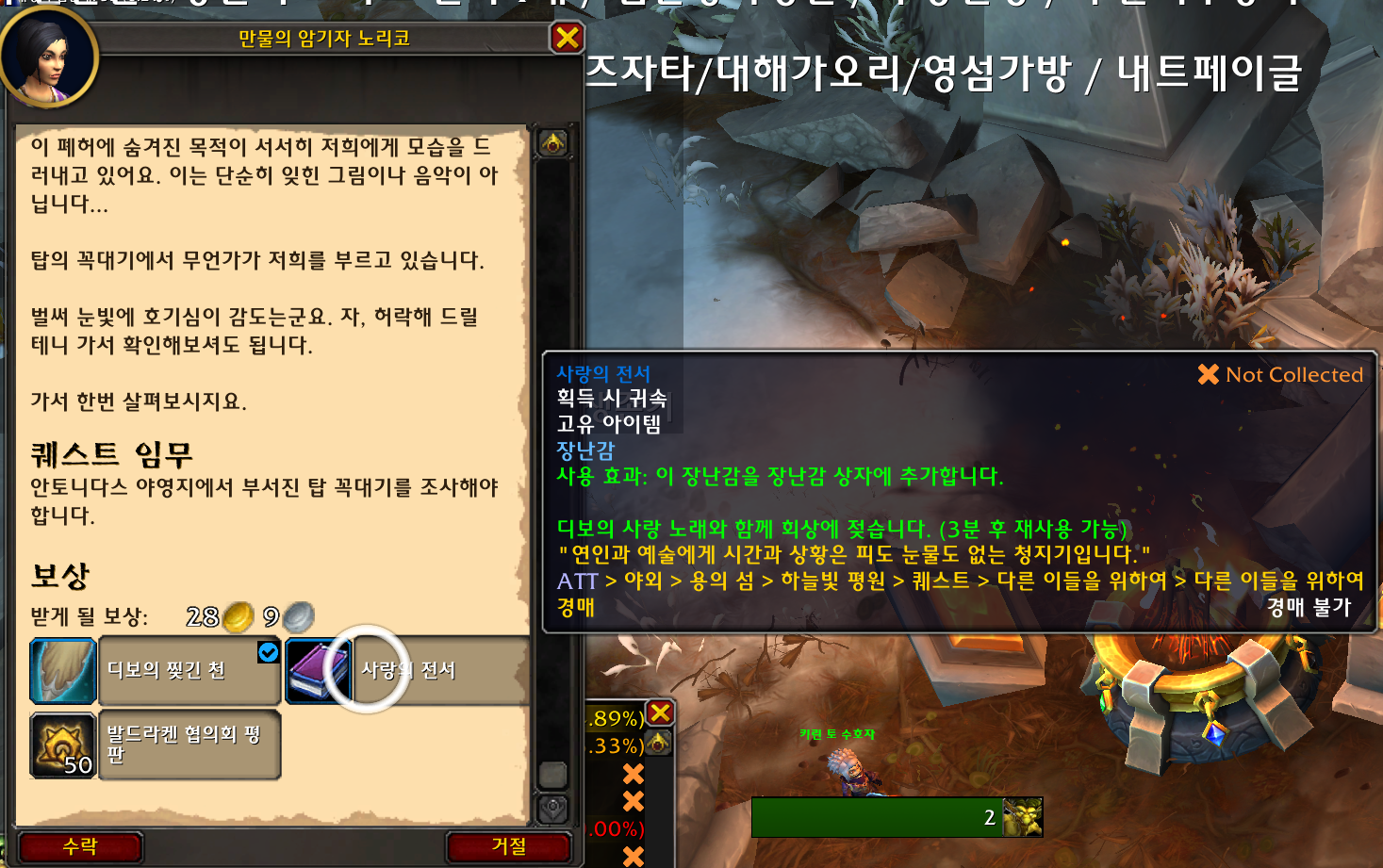 사랑의 전서는 용군단 장난감으로 퀘스트 완료 보상입니다.
