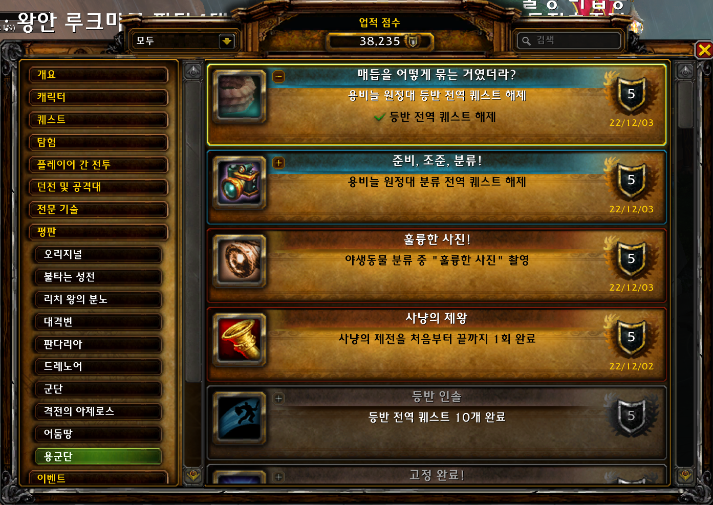 등반전역퀘 관련 업적이 5개나 있어서 앞으로 등반전역퀘할때 할수있는것을 하나씩 해야할것 같습니다.