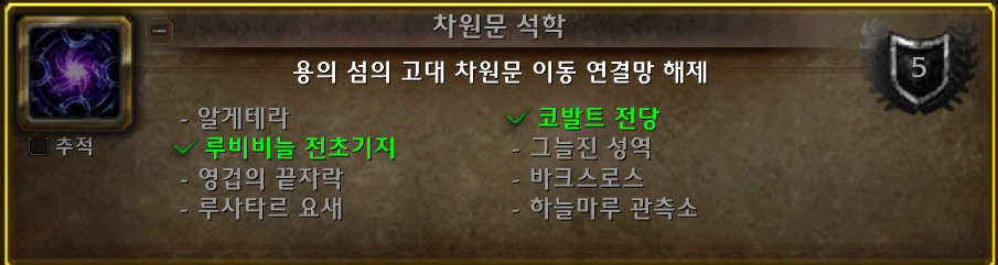 고대 차원문은 총 8곳으로 8개를 전부 잠금해제하는 업적이 있습니다. 첫업적을 하면 코발트 전당과 루비비늘 전초기지를 잇는 연결망이 해제되면서 2개가 체크되고 6개를 더 해제하면 되는데 영예가 필요합니다.