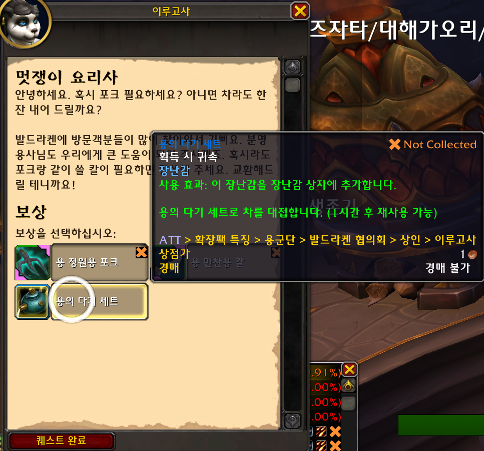 용의 다기 세트 장난감은 용군단 장난감으로 퀘스트 완료 보상입니다.