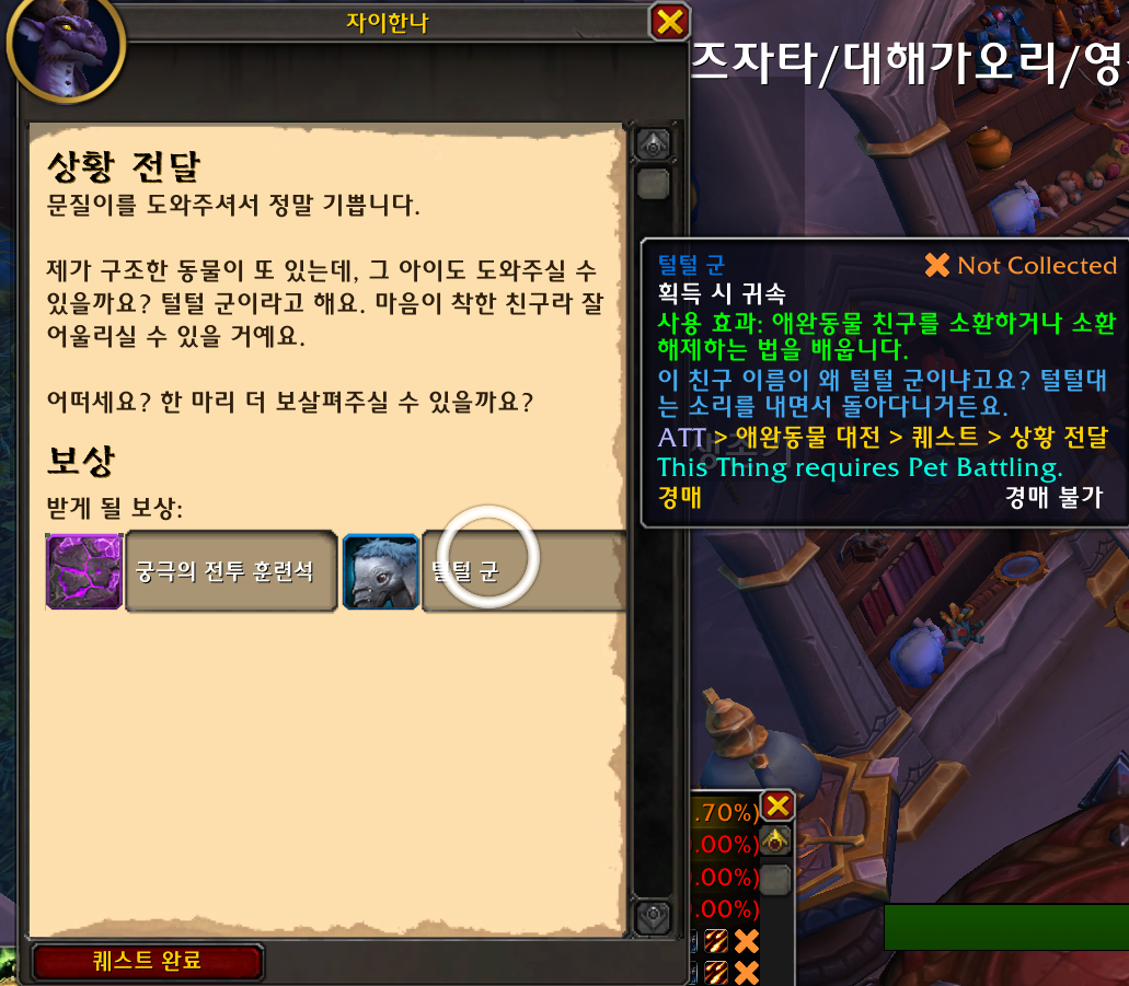 털털 군 애완동물은 퀘스트완료 보상입니다.