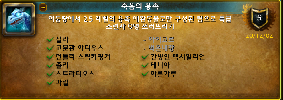 항상 매확팩에 있는 한종류 애완동물로 용군단 조련사 이기는 업적입니다.