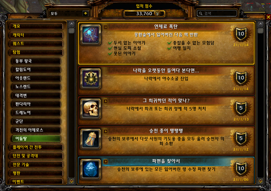 | [와우업적]나락을 오랫동안 들여다 본다면... (0) | 2021.01.14 |