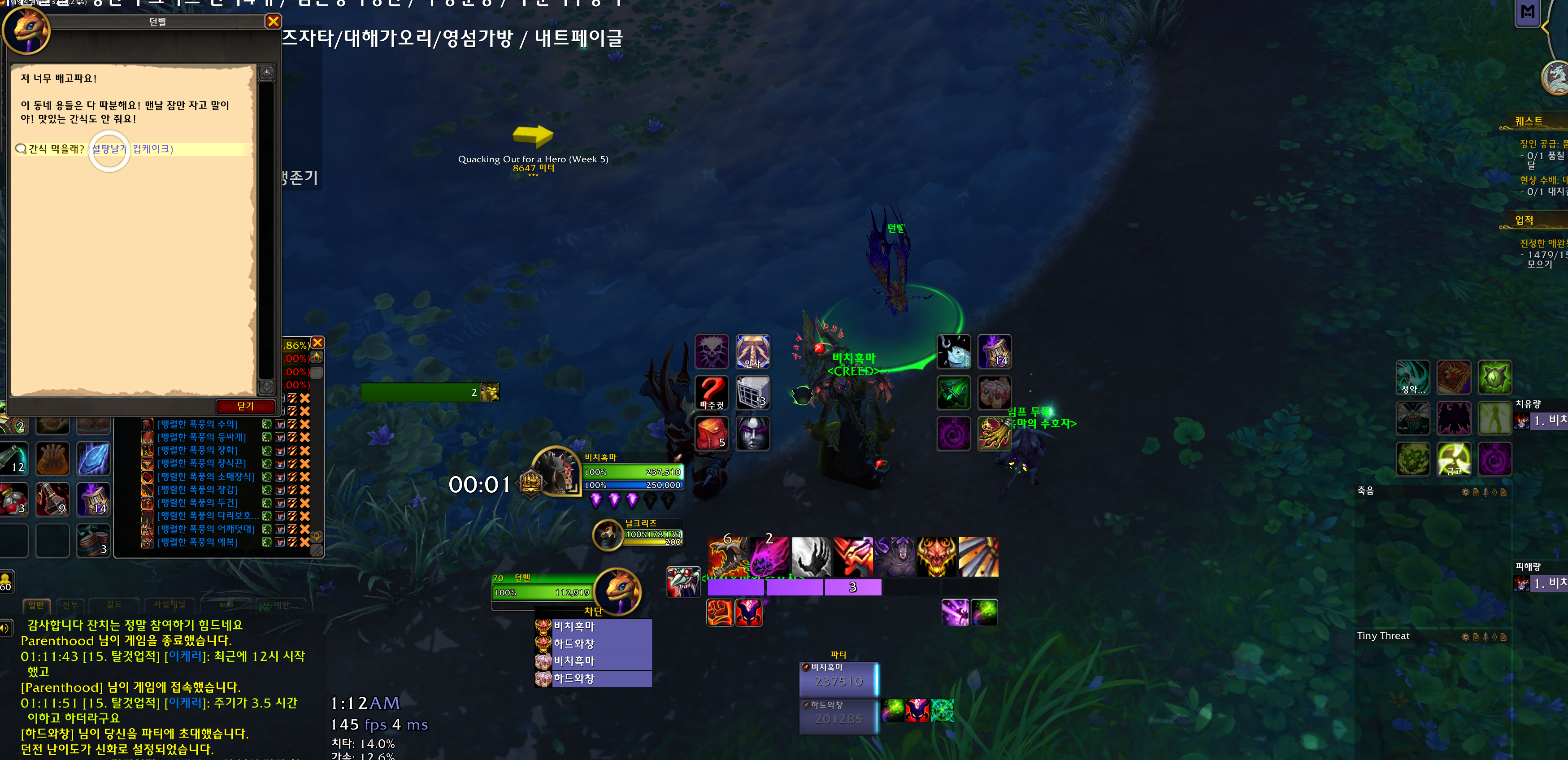 그러면 던벨이 이동을하고 던벨을따라 이동하면 비늘추적자 메제리가 팝업됩니다.
