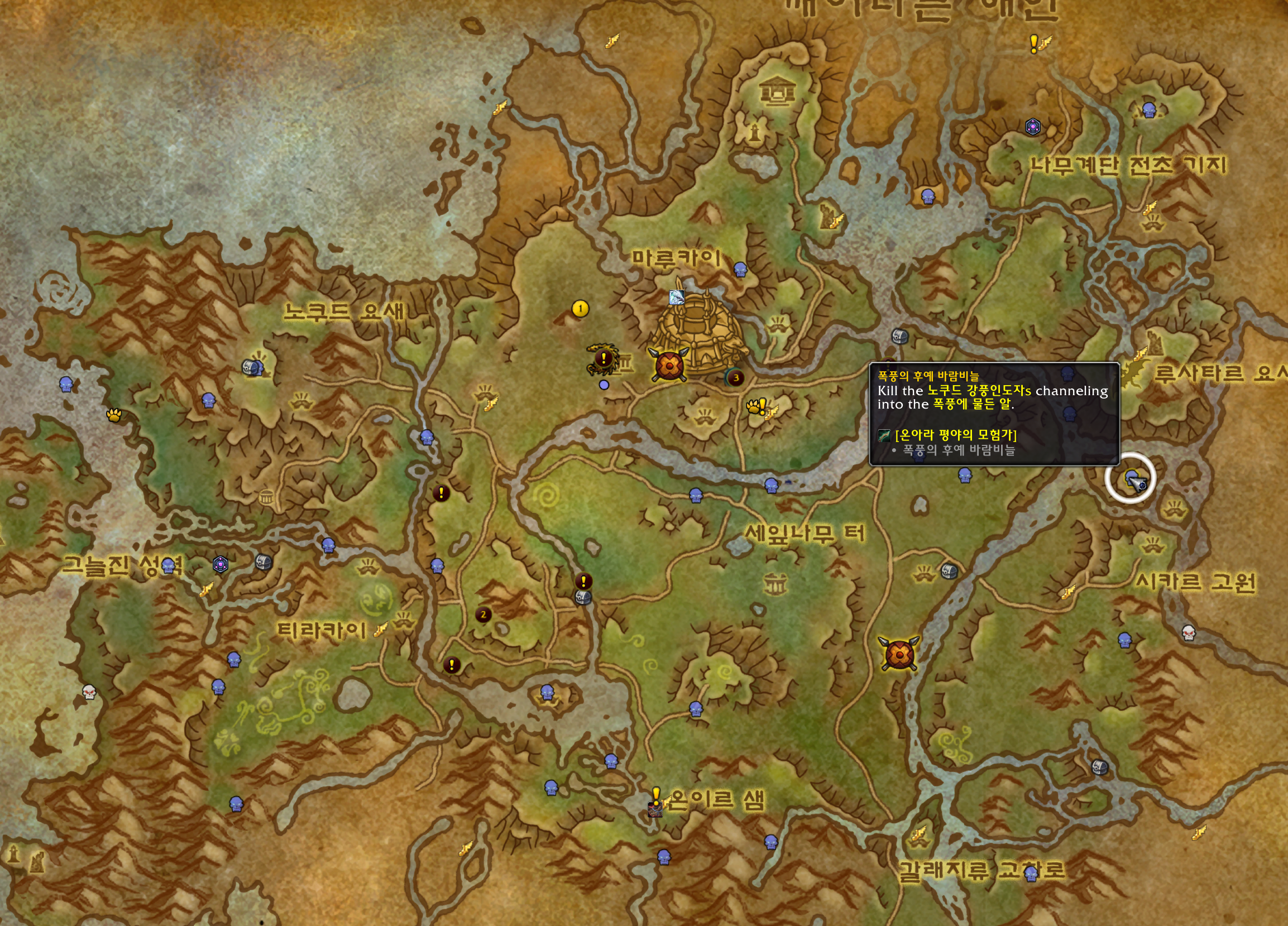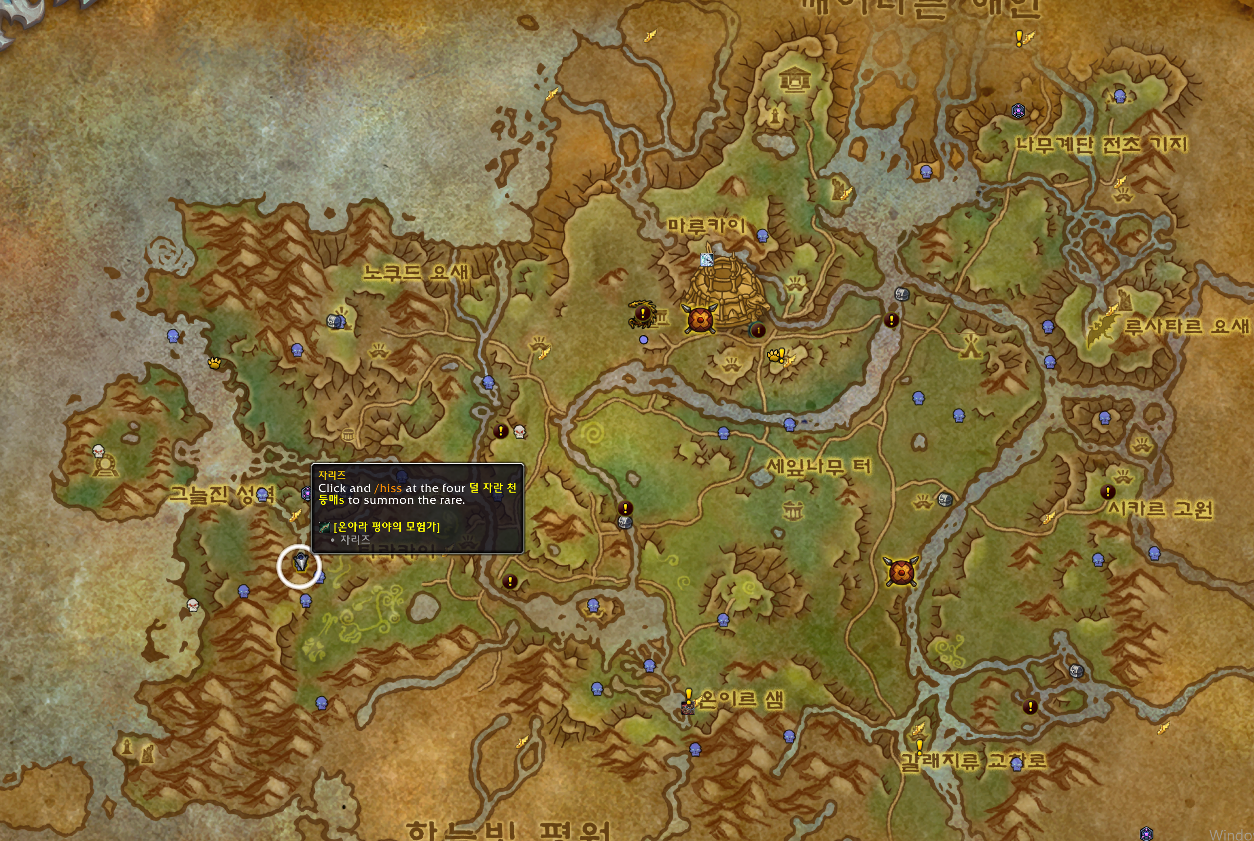 온아라 평야의 모험가 업적은 온아라 평야에 있는 은테몹 10마리를 잡는업적입니다.