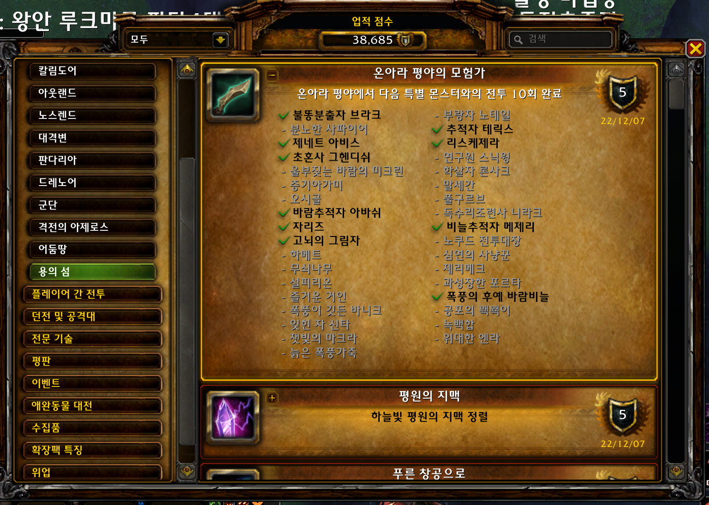 2022.12.07 온아라 평야의 모험가 획득 5점짜리 38685점