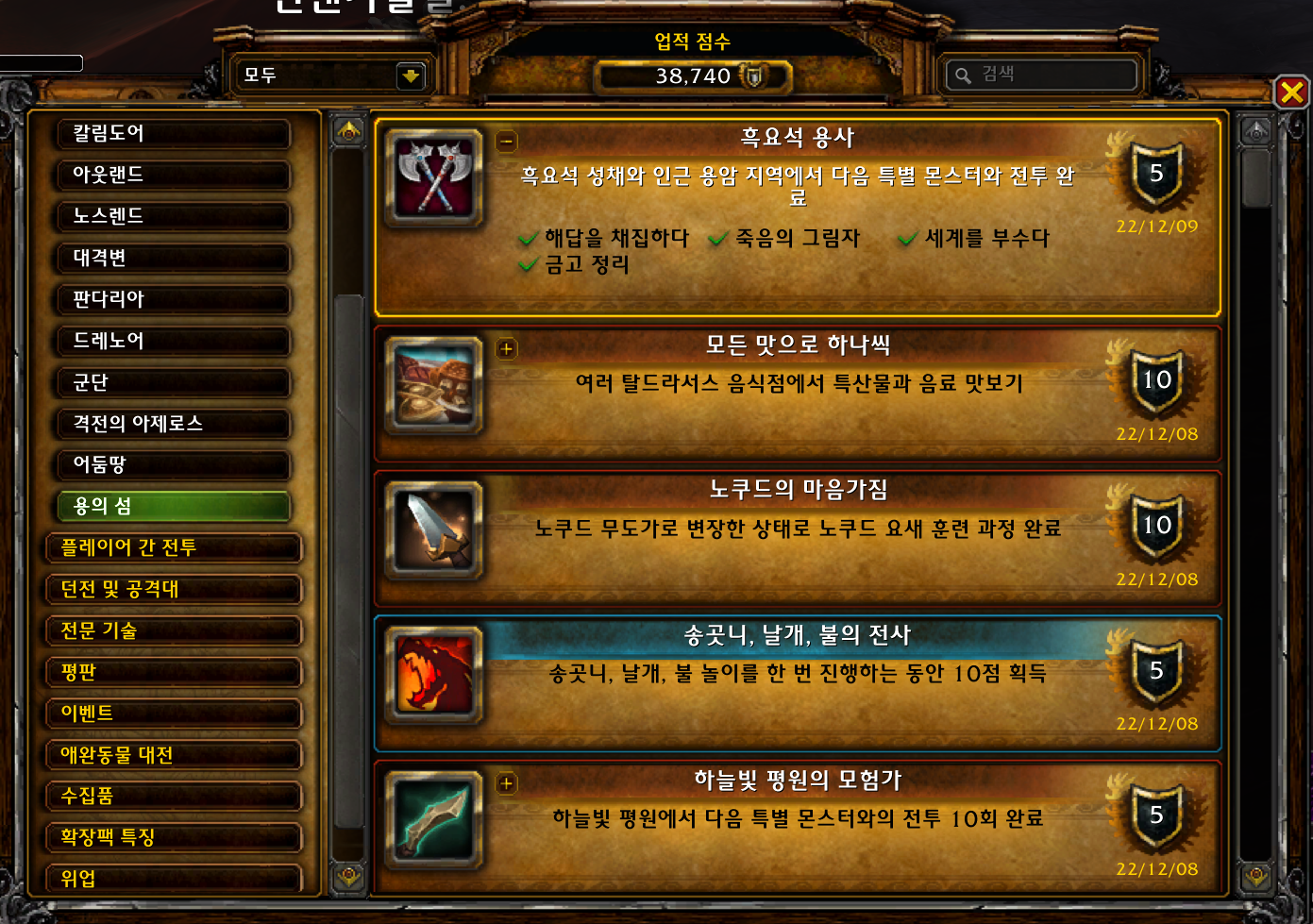 | [와우업적]송곳니, 날개, 불의 전사 (2) | 2022.12.08 |