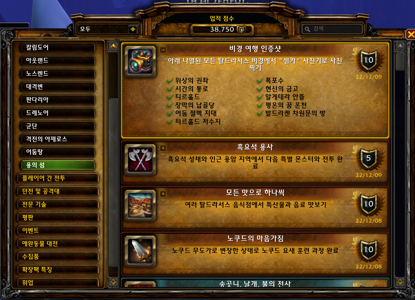| [와우업적]모든 맛으로 하나씩 (5) | 2022.12.08 |