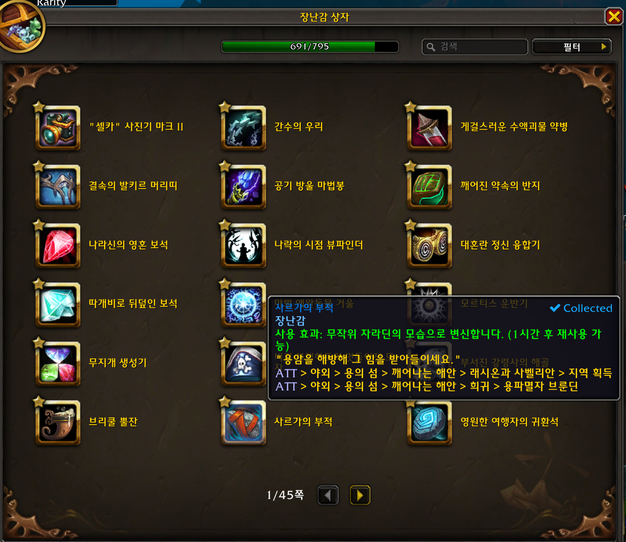 2022.12.10 사르가의 부적 획득 691번째 장난감