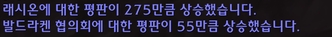일단 본인이 효율충이면 제가 추천하는 방법은 매주 주간퀘가 있습니다. 래시온와 사벨리안 중에 선택하면 주간퀘가 생기는데 그 주간퀘를 깨면 평판을 2000넘게 주는 퀘가 4개인가 있습니다.