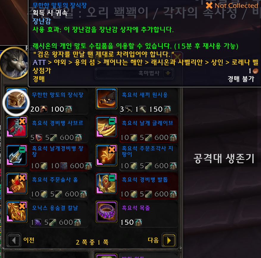 무한한 망토의 장식장 장난감은 용군단 장난감으로 래시온 병참장교가 판매합니다.