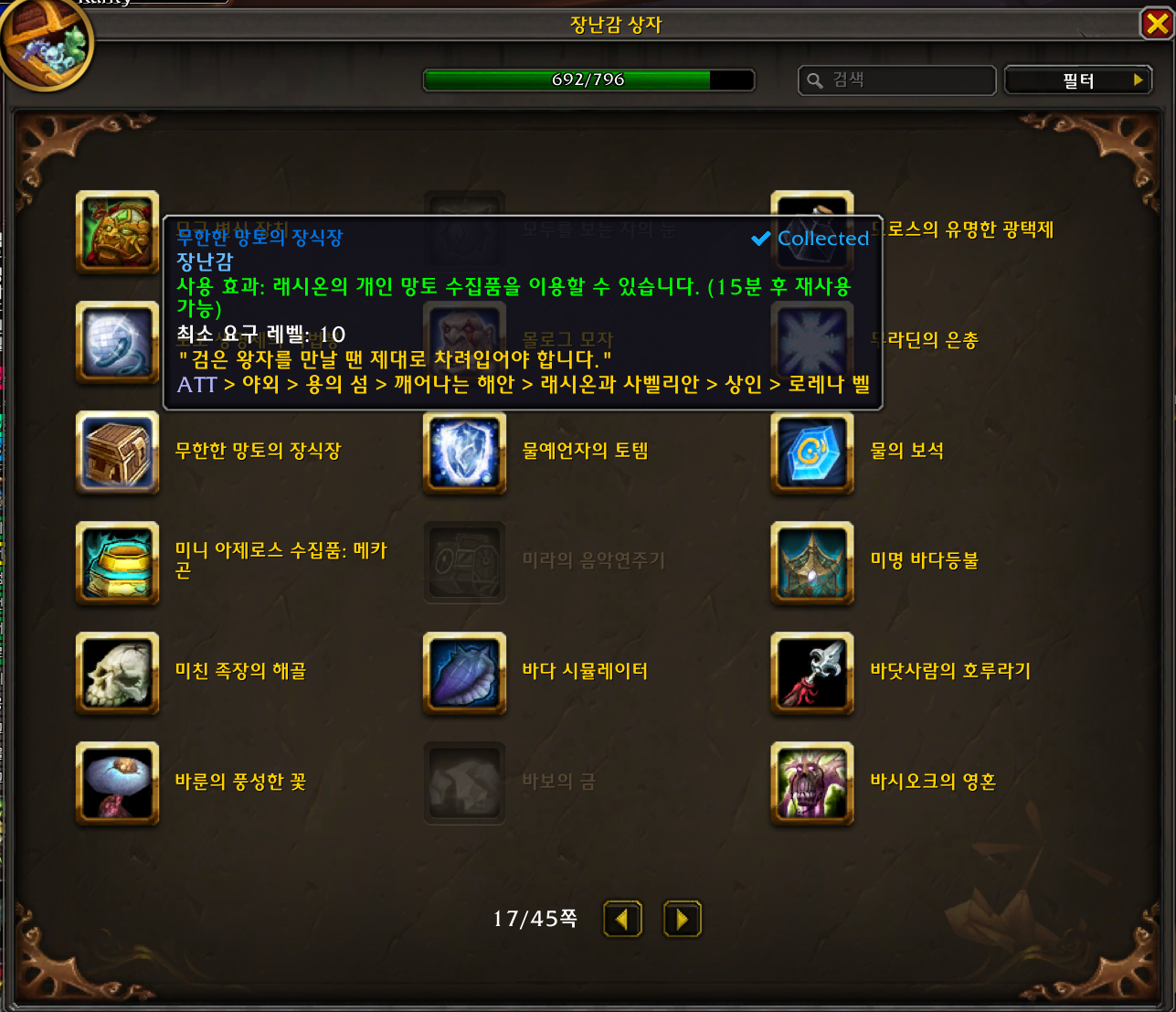 2022.12.10 무한한 망토의 장식장 획득 692번째 장난감