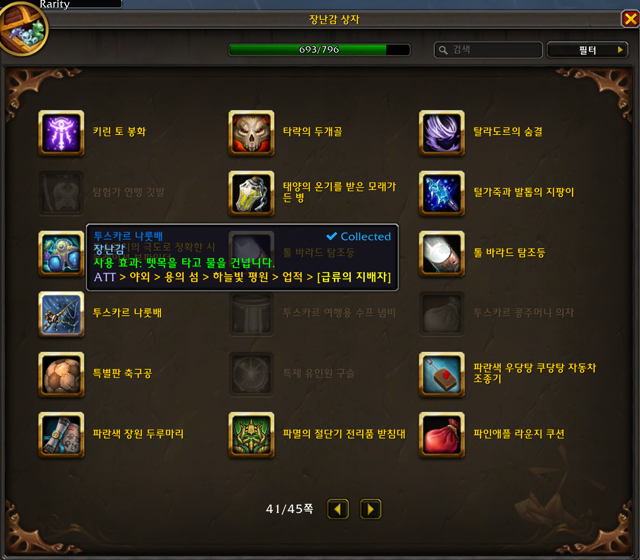 2022.12.10 투스카르 나룻배 획득 693번째 장난감