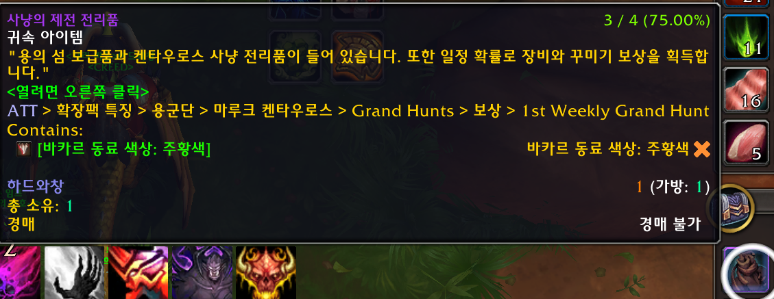 그리고 제가 사냥의 제전업적 다하려고 이번주에 사냥의 제전 계속 참여했는데 약간 버그가있습니다.