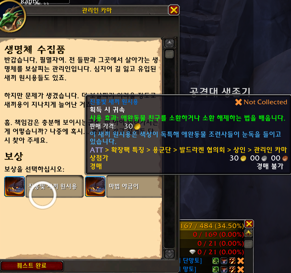 발드라켄 해당위치에 가면 관리인 카마가 진홍빛 새끼 원시용 애완동물을 무료로 줍니다.