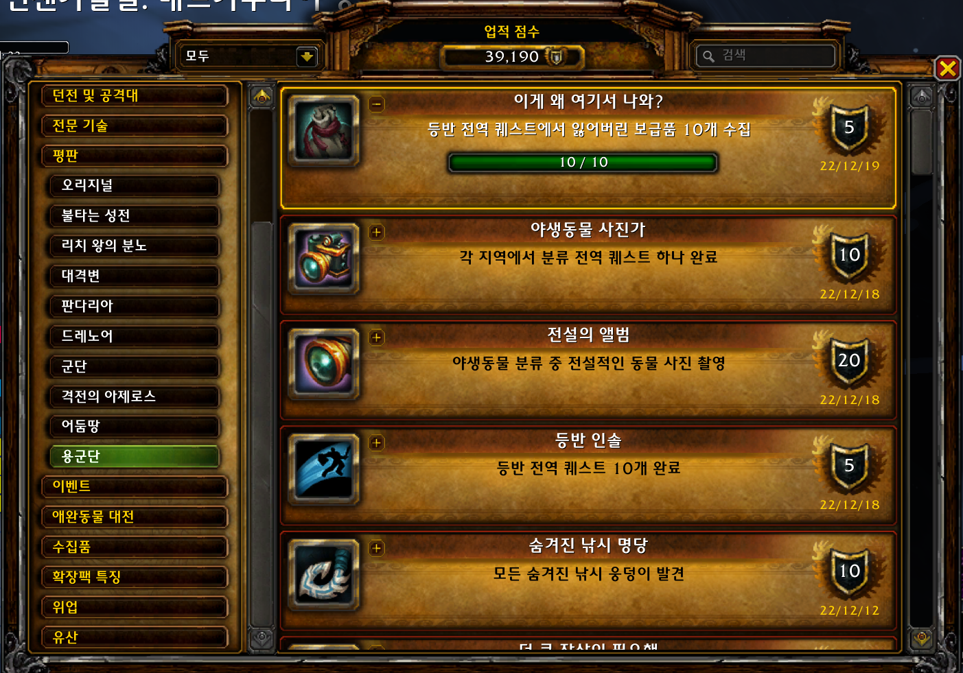 이게 왜 여기서 나와? 업적은 용군단 업적으로 등반 전역퀘중에 하는 업적입니다.