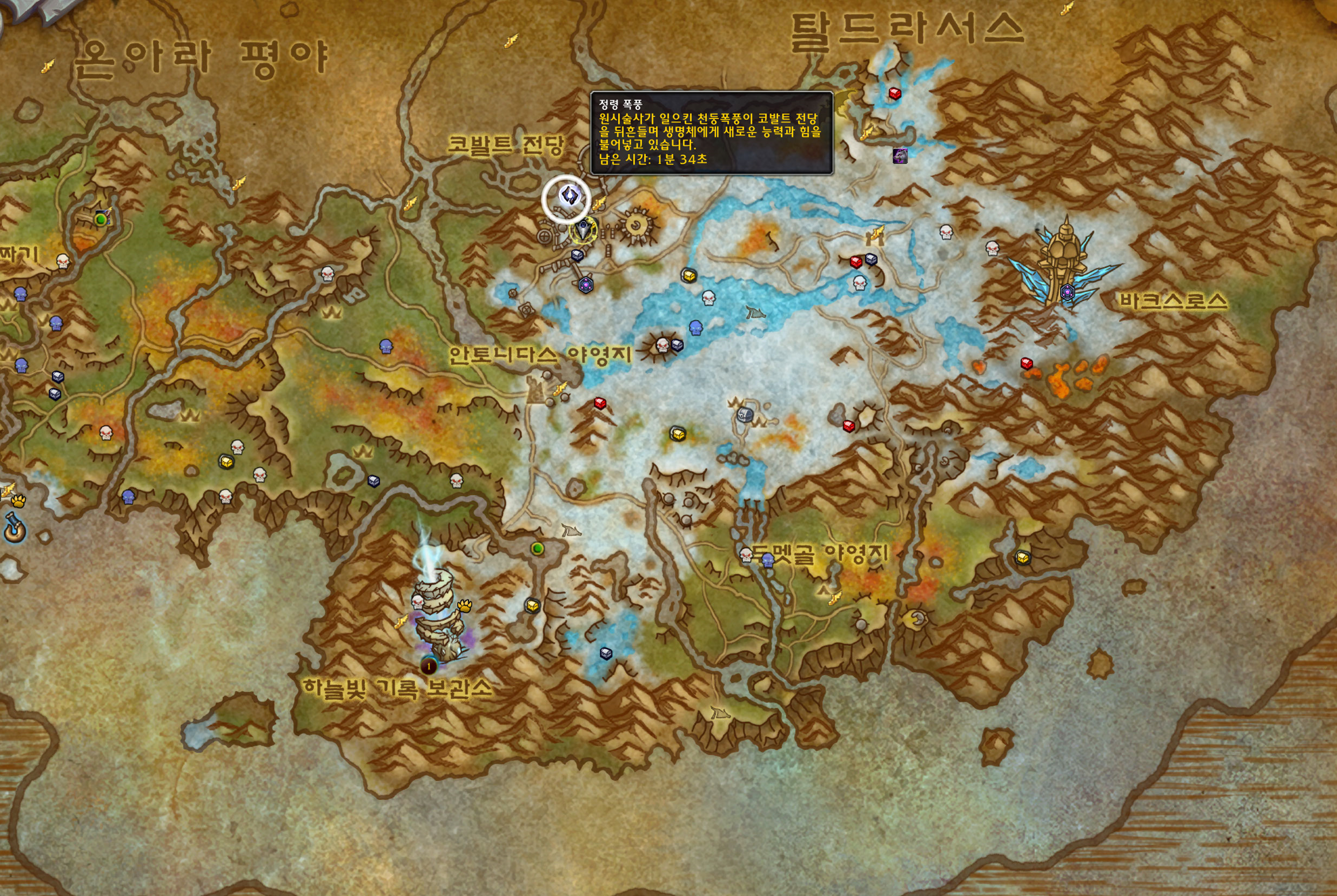 맵을 보면 이런식으로 폭풍이벤트중인 위치가 나옵니다.