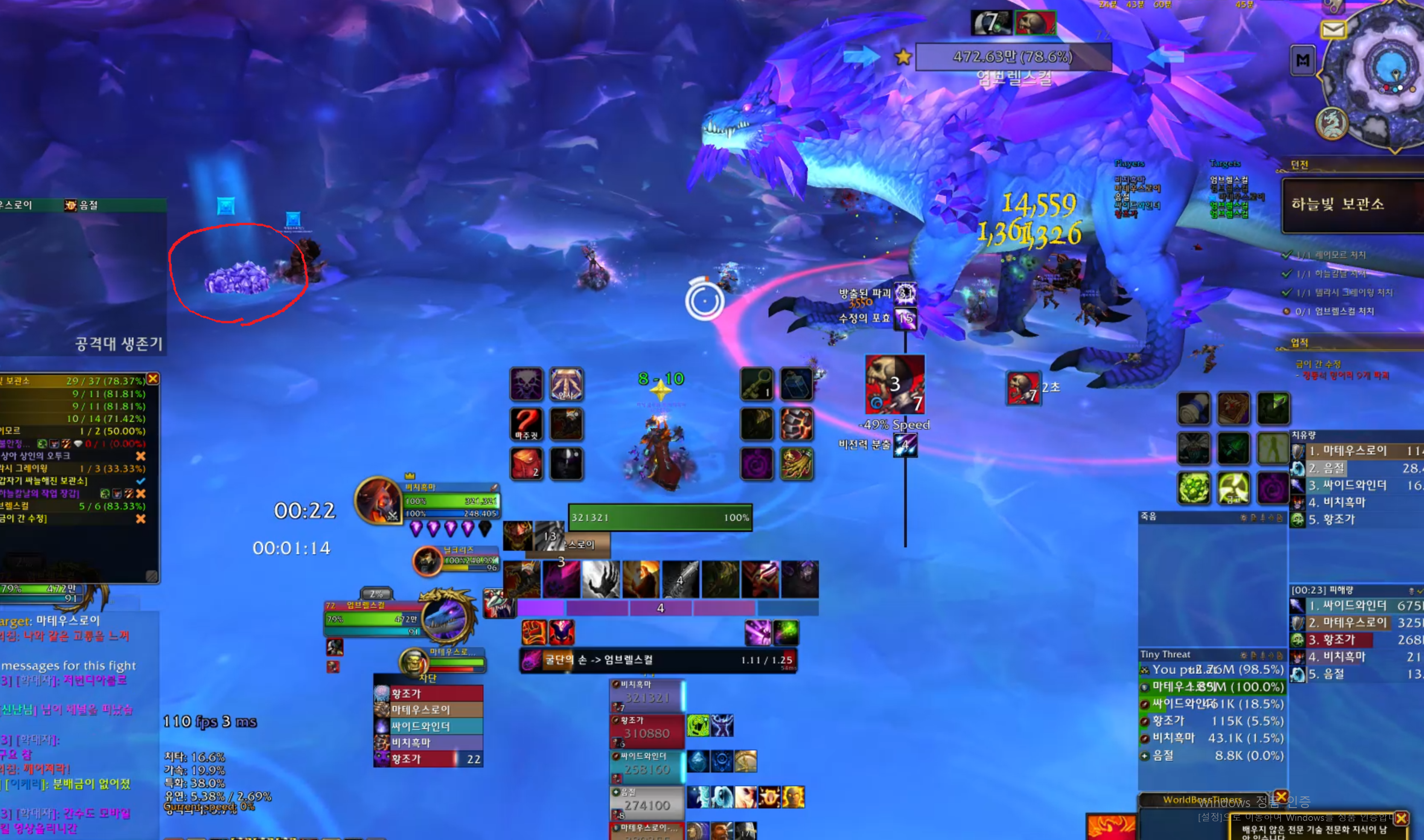 맵에보면 싸늘한 수정이 있습니다. 넴드가 쓰는 스킬인 얼음의 압도자를 플레이어에게 쓰는데 걸린 플레이어는 빠르게 수정옆으로 가면 됩니다.