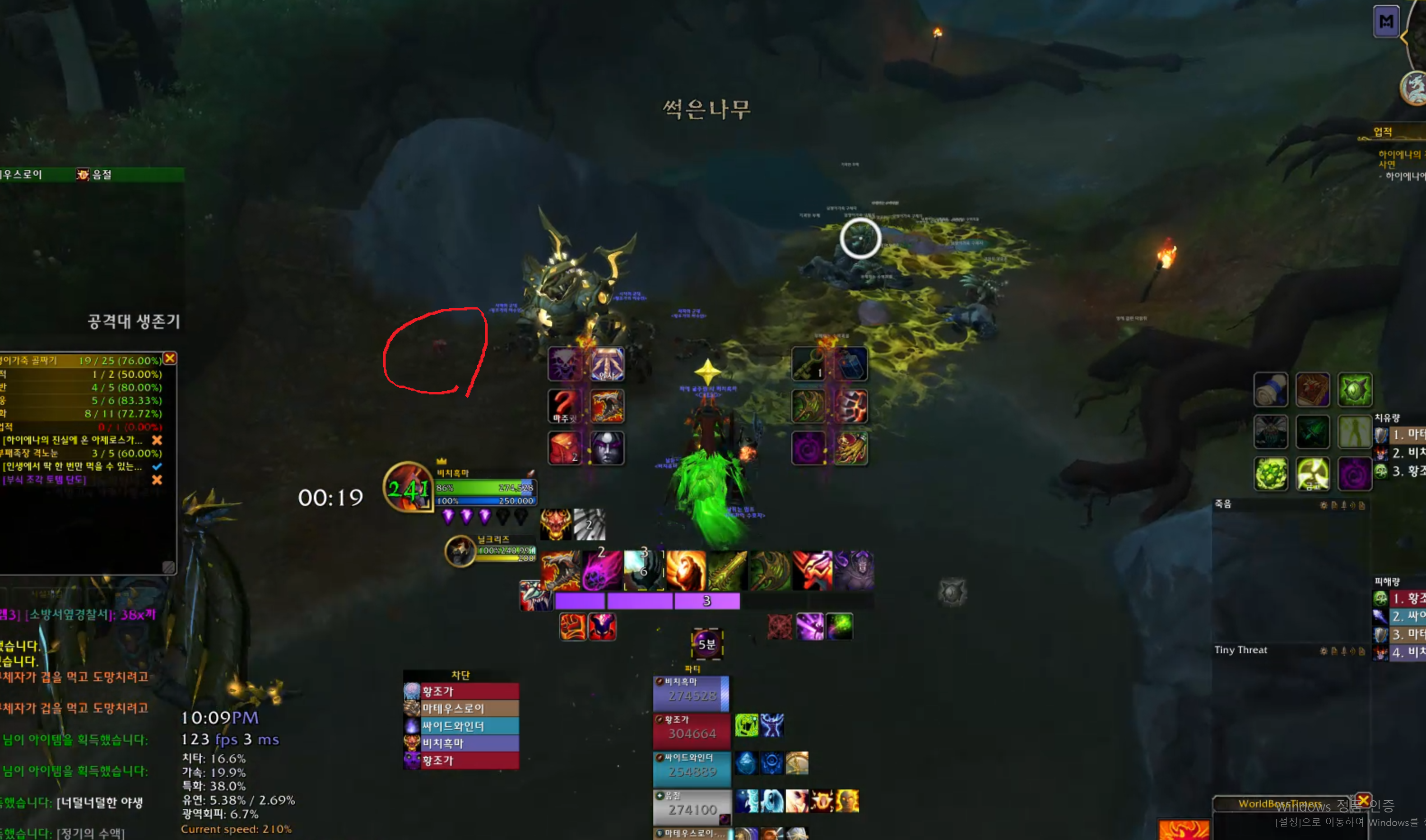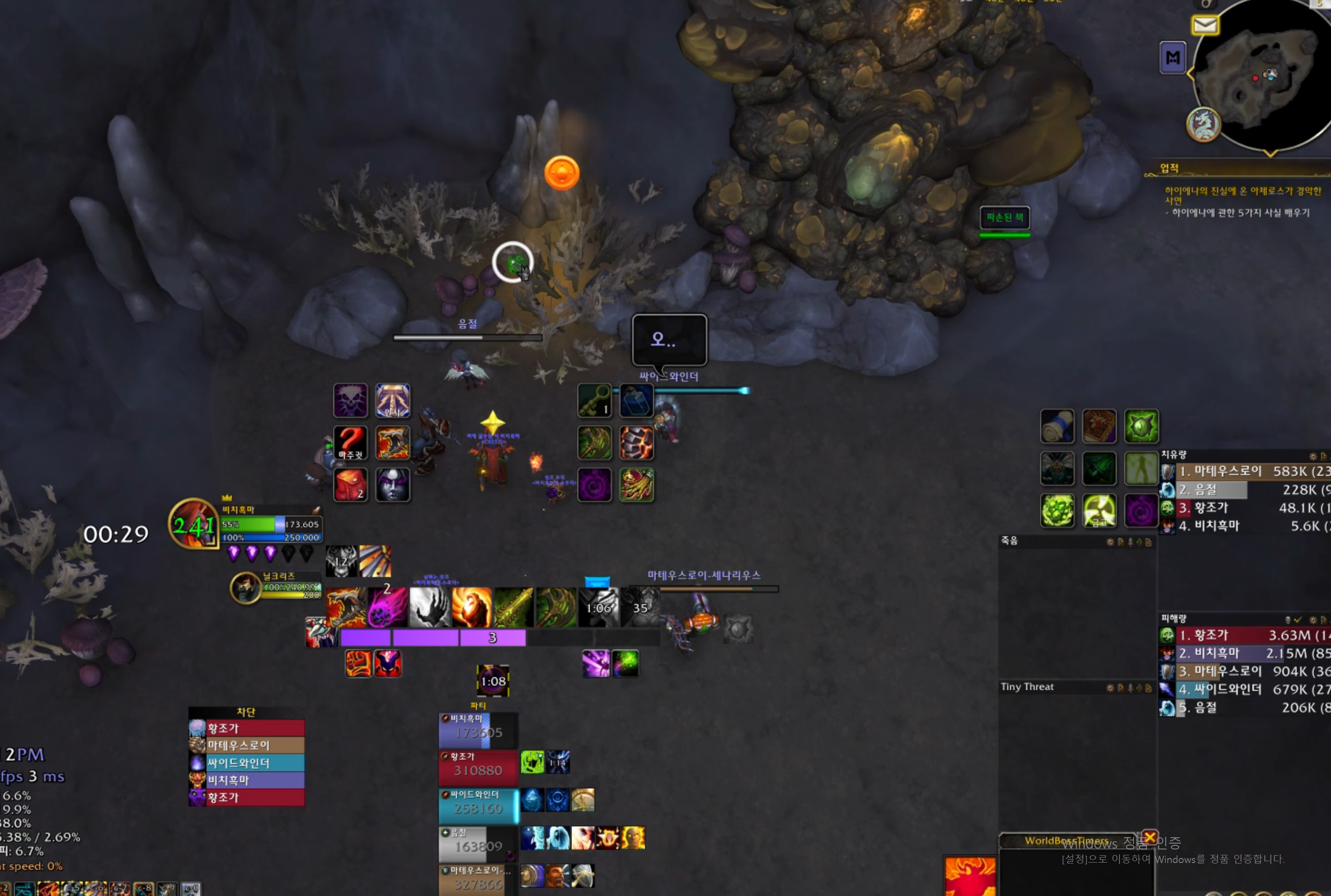 막넴 뒤편에 보면 클릭이 가능한 온아라가 있습니다. 온아라를 힐러가 풀피체우고 넴드를 막페로 넘깁니다.