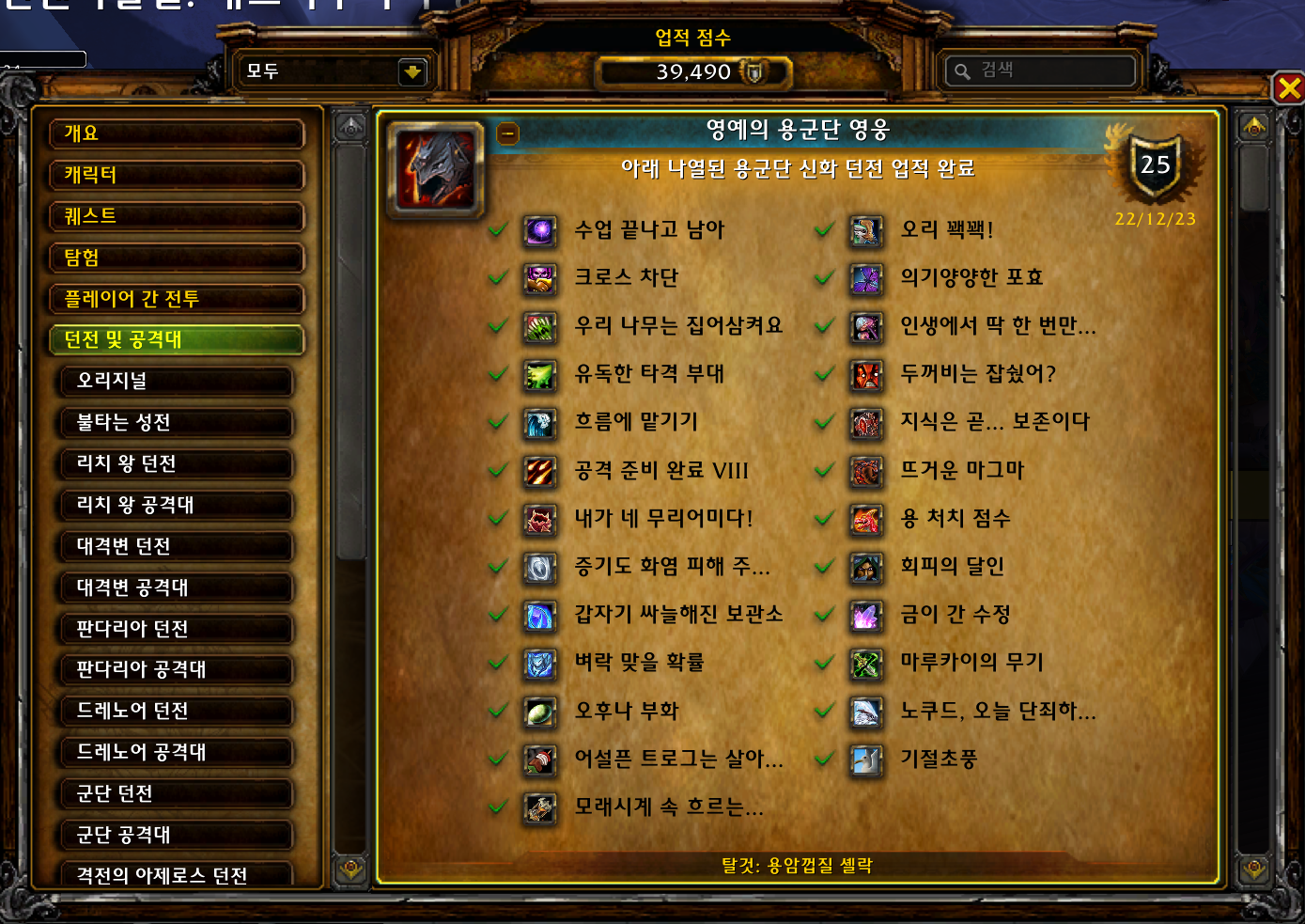 2022.12.23 영예의 용군단 영웅 획득 25점짜리 39490점