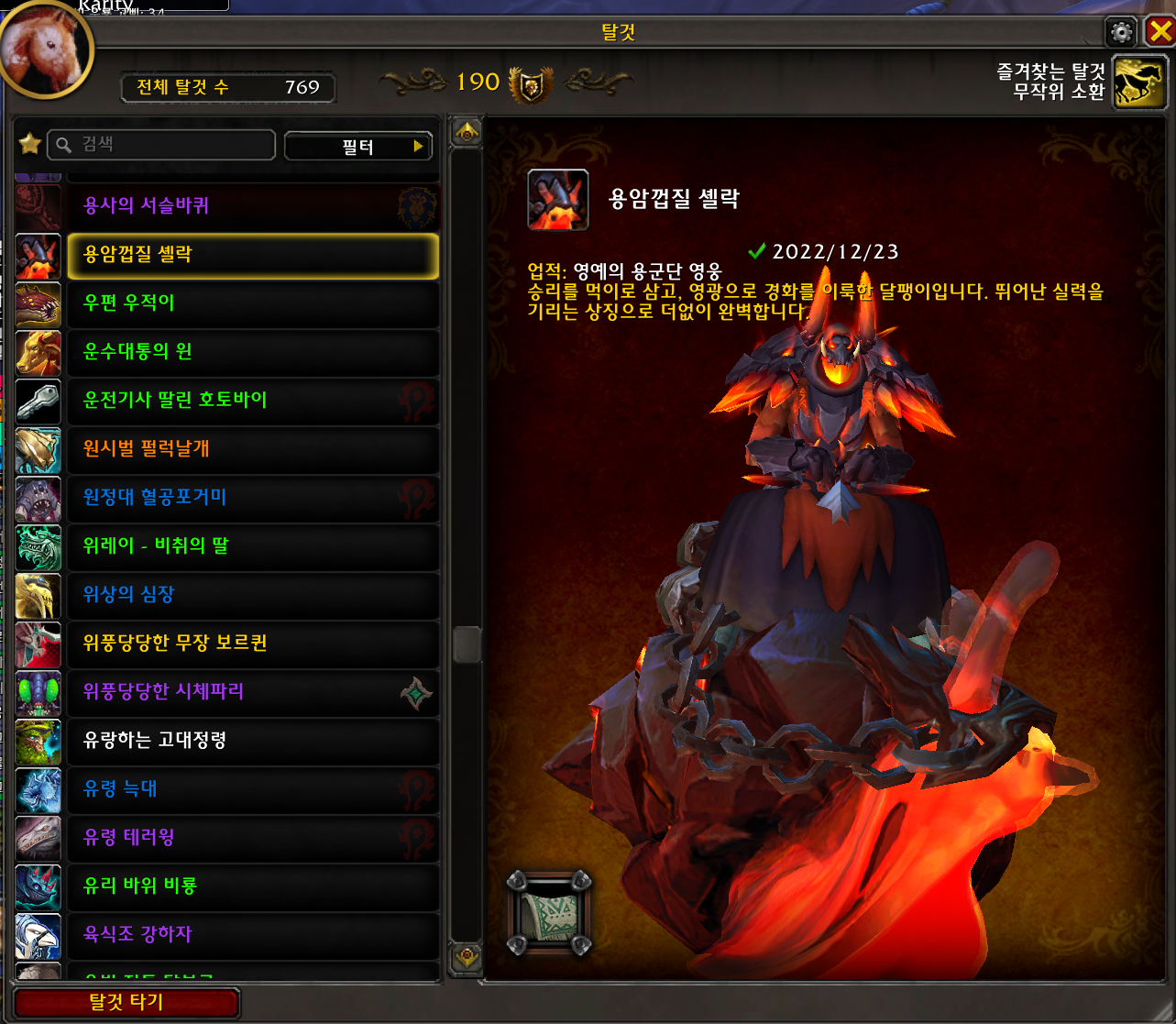 2022.12.23 용암껍질 셸락 획득 769번째 탈것