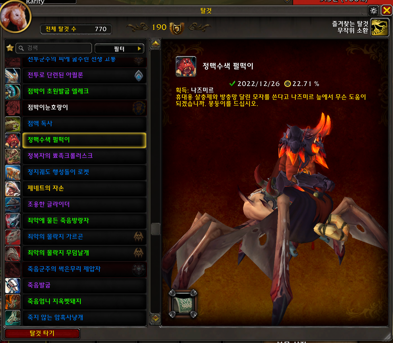 2022.12.26 정맥수색 펄떡이 획득 770번째 탈것