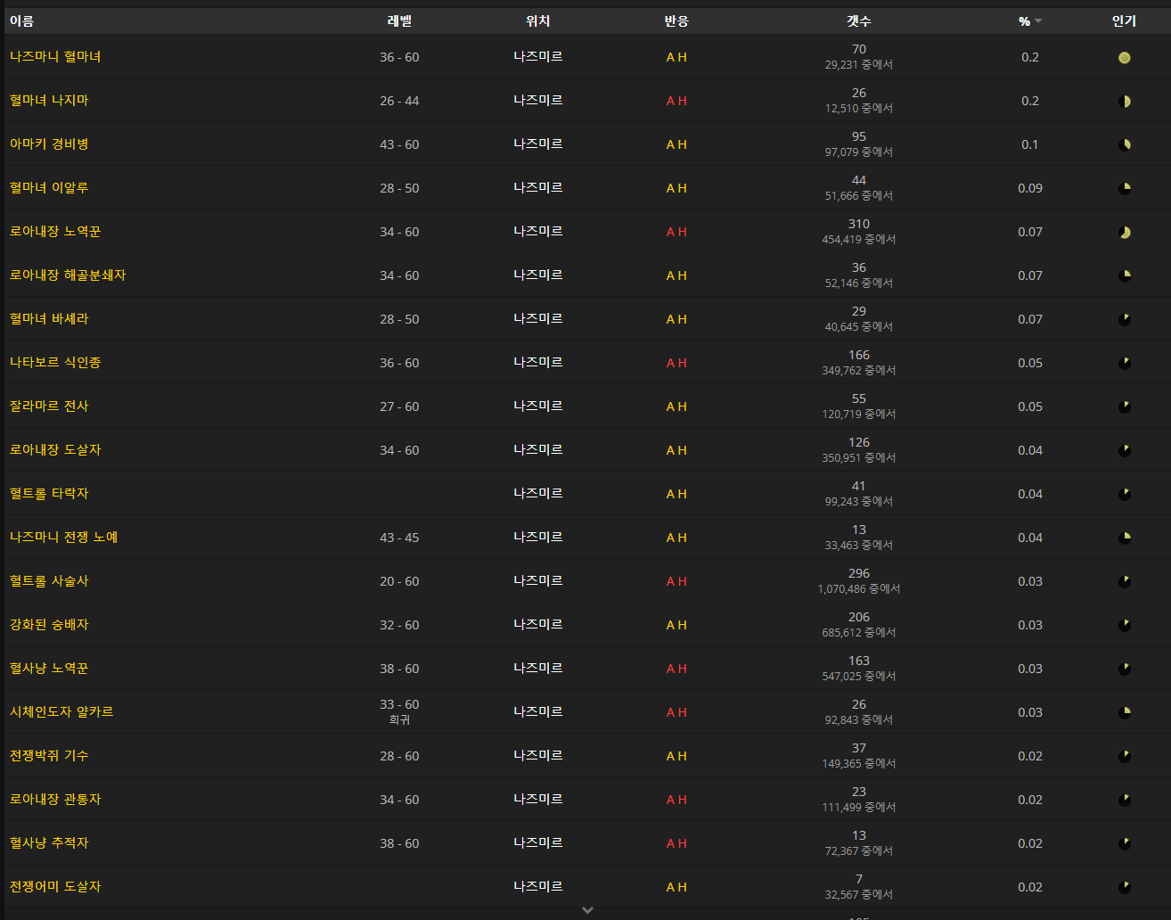 나즈미르에 엄청 많은 몹들이 드랍합니다.