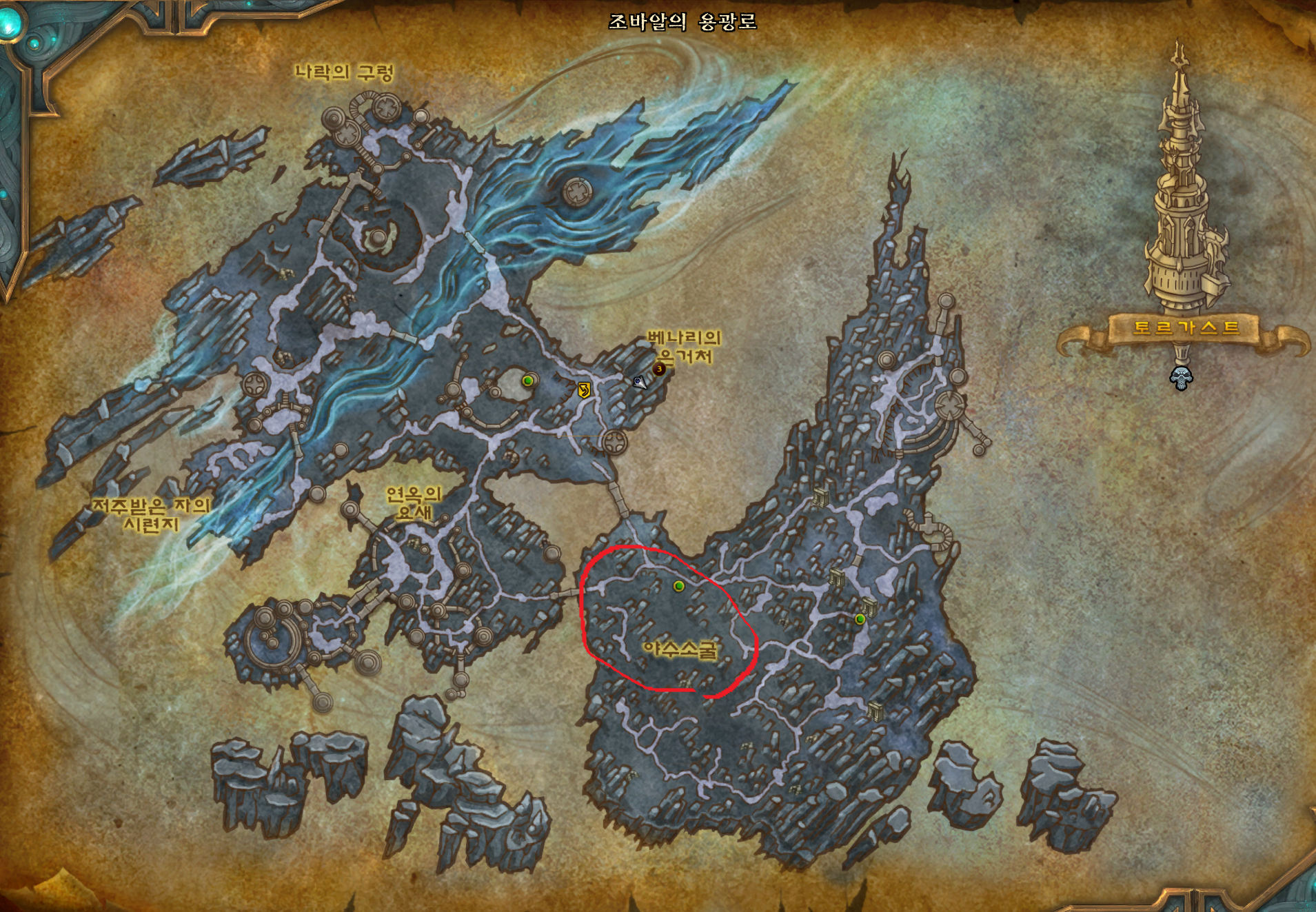 야수소굴 위치