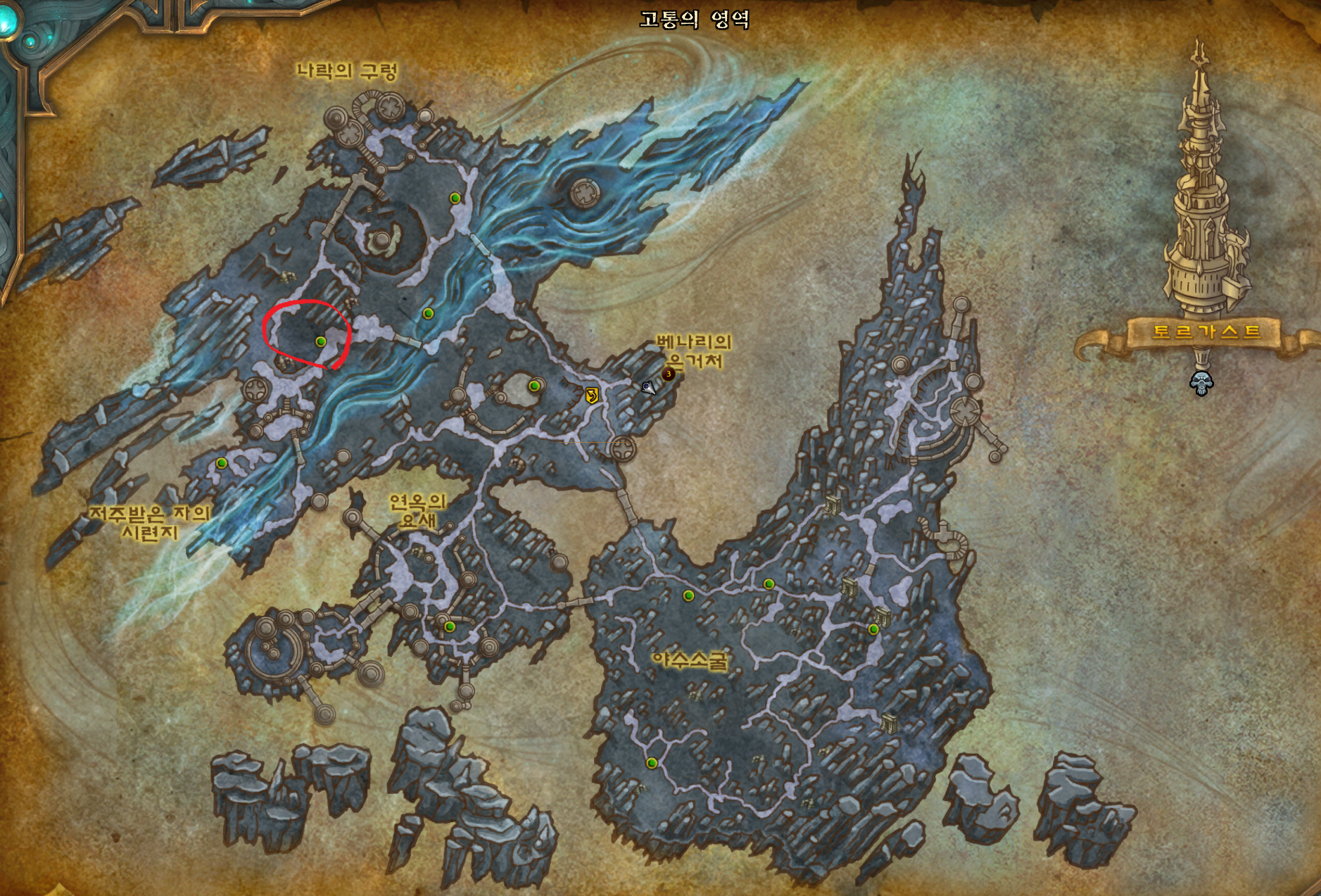 나락 지역의 지도를 밝히는 업적입니다.