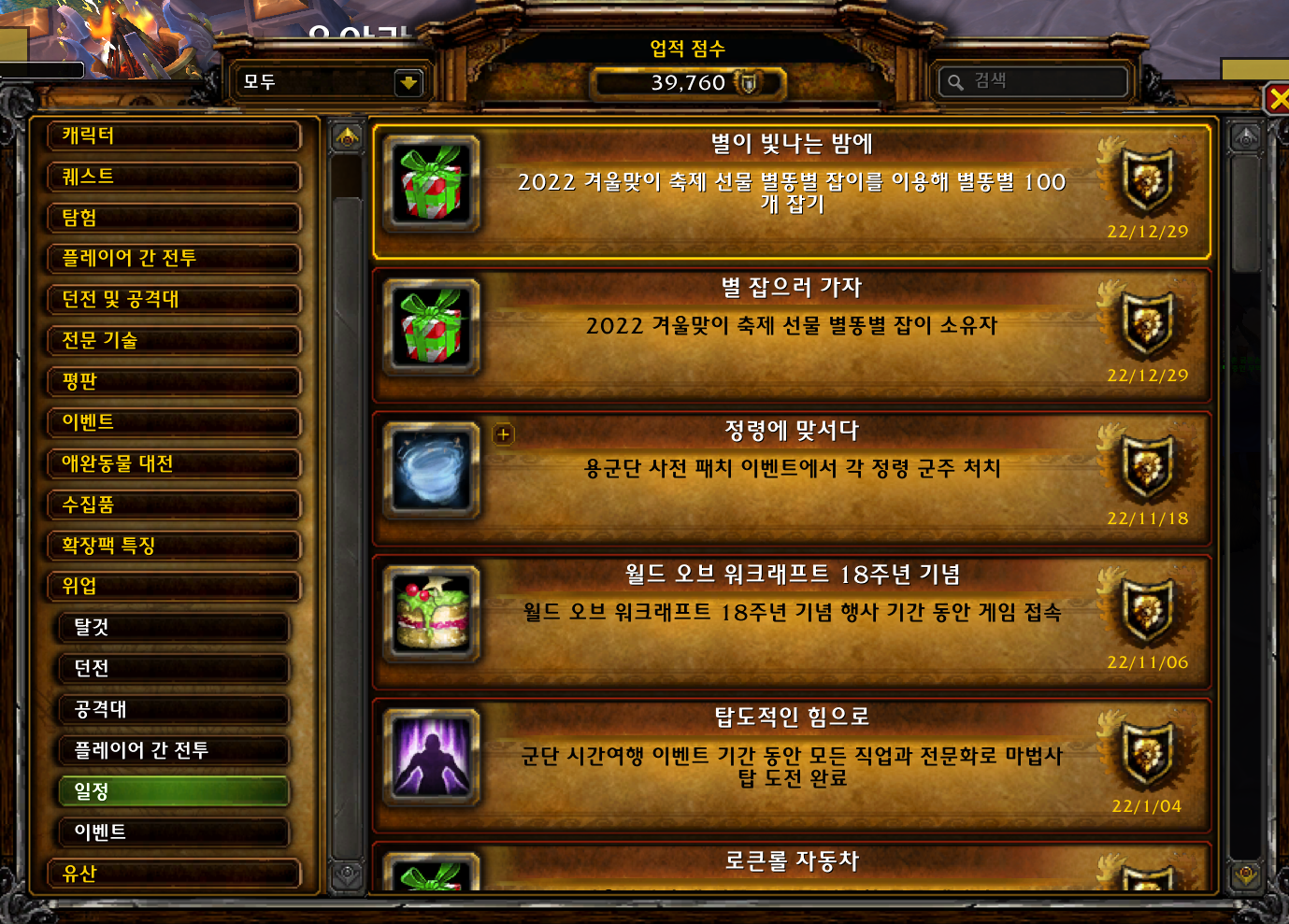 2022.12.29 별이 빛나는 밤에 획득 위업