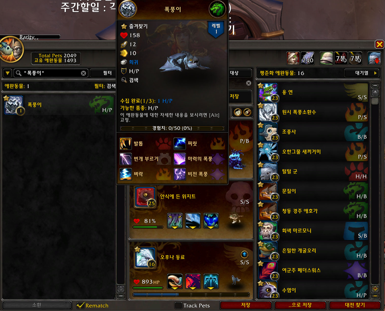 2022.12.30 폭풍이 획득 1493번째 애완동물