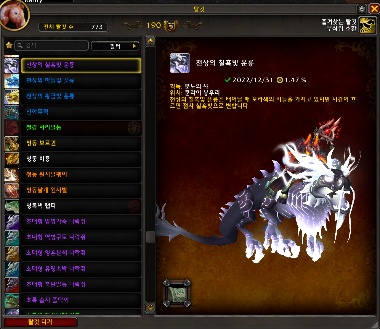 2022.12.31 천상의 칠흑빛 운룡 획득 773번째 탈것