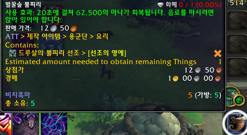 벌꿀술 뿔피리1개 벌꿀술 뿔피리를 구하는 방법은 글 맨밑에 따로 적어놓을텐데 그냥 경매장에서 구매하면 됩니다. 아즈호드기준 1골입니다.