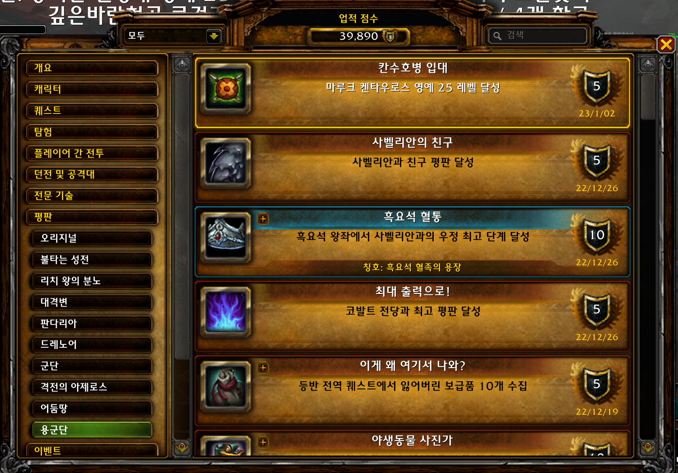 | [와우업적]사벨리안의 친구 / 흑요석 혈통 (0) | 2022.12.28 |