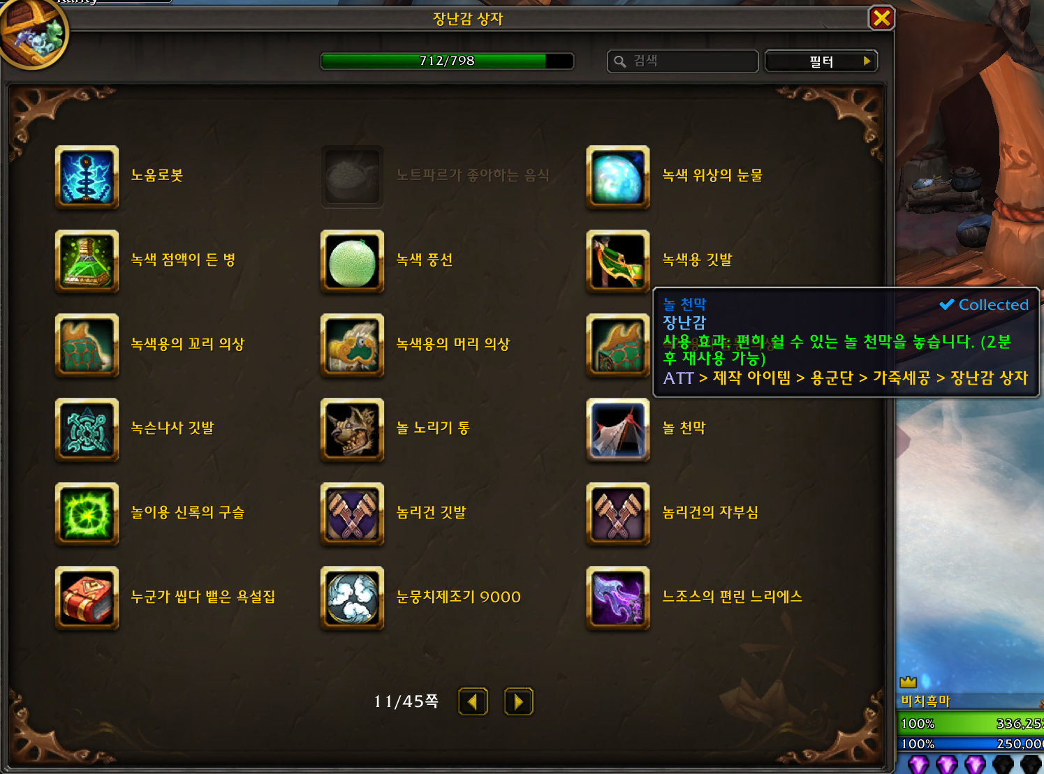 2023.01.04 놀 천막 획득 712번째 장난감