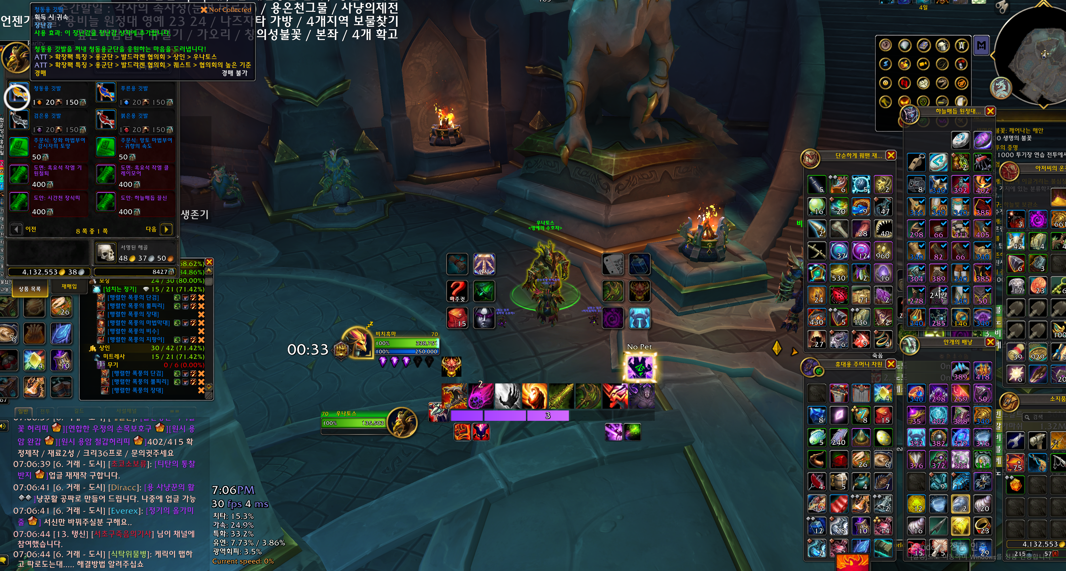 우나토스가 판매하는데 영원의 호박석 2성 1개 / 너덜너덜한 야생천 20개 / 용의 섬 보급품 150 이 필요합니다.