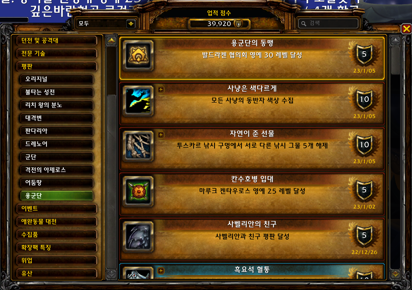 2023.01.05 용군단의 동맹 획득 5점짜리 39920점