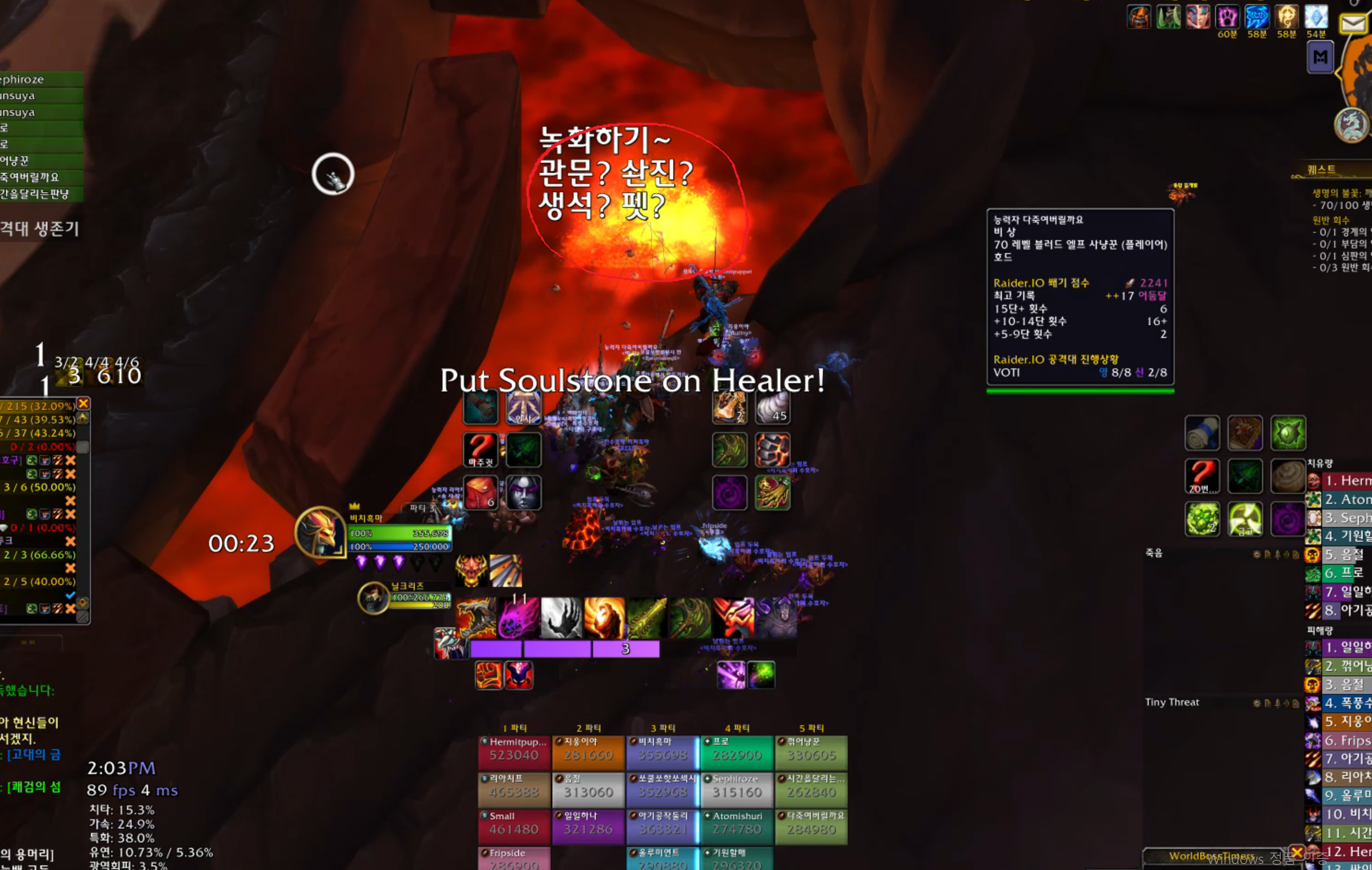 불꽃의 거수는 중첩이 있는데 이 중첩은 에라노그가 소환하는 쫄바닥위에 올리면 중첩이 내려갑니다. 중첩을 없앨때 광딜이 들어오니 그것만 조심하면서 거수잡고 넴드 잡으면 됩니다.