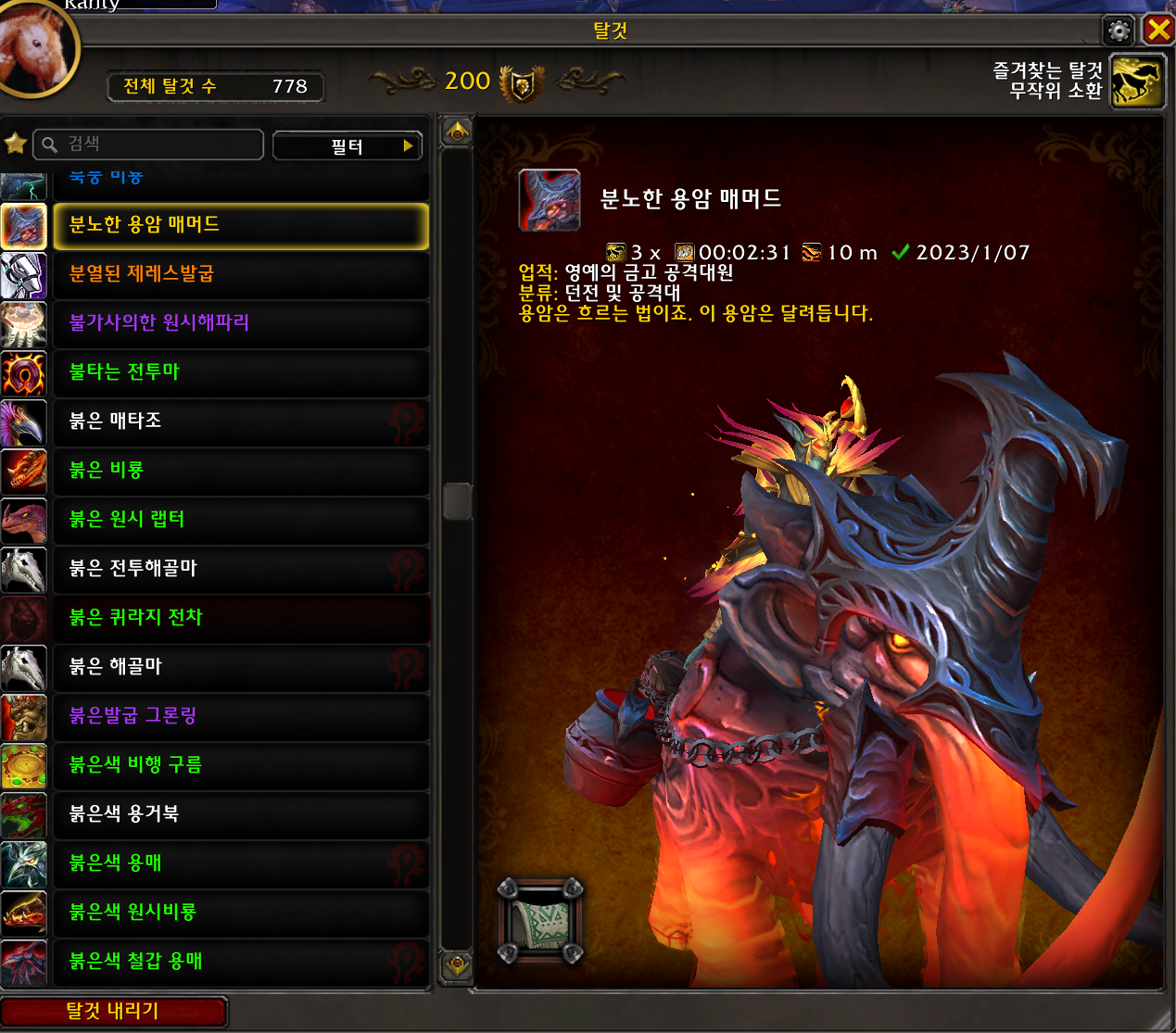 2023.01.07 분노한 용암 매머드 획득 778번째 탈것
