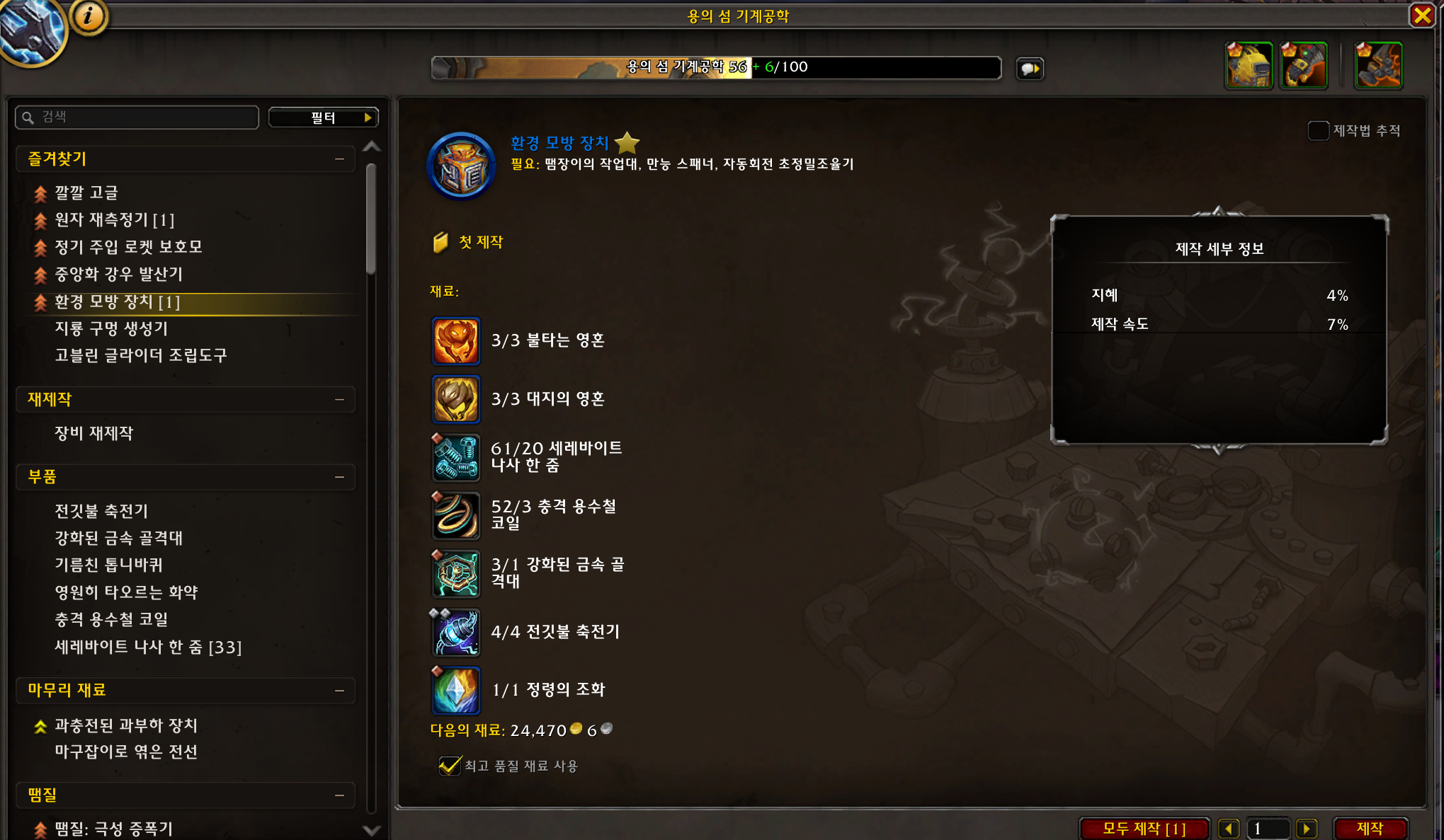 환경 모방 장치를 제작하려면 기계적 사고 10포인트 / 진귀품 25포인트를 찍어야 합니다.