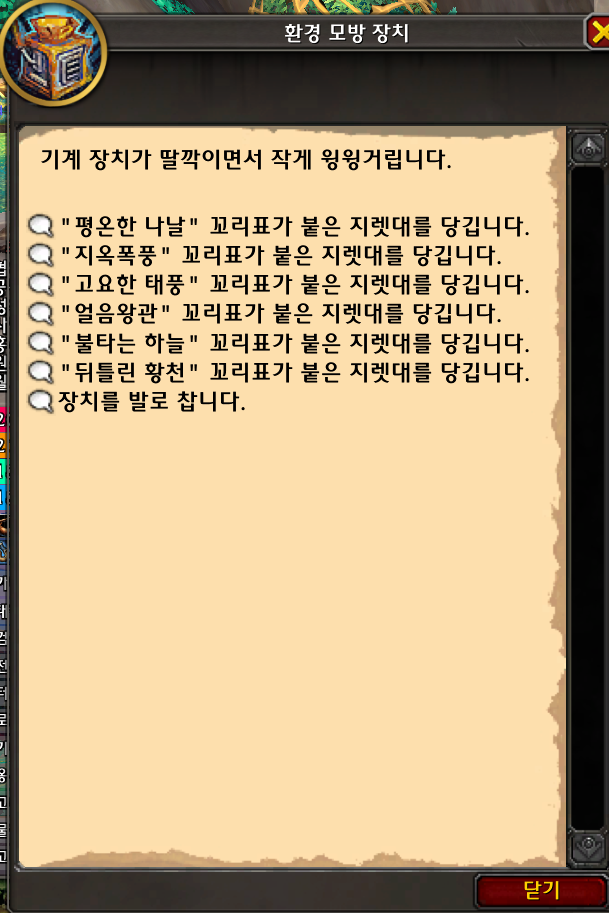 장난감을 사용하면 환경 모방 장치가 나오고 선택지들이 생기는데