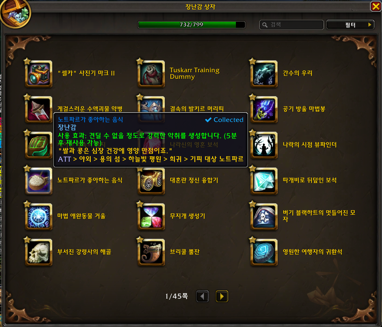 노트파르가 좋아하는 음식 장난감은 용군단 장난감으로 은테몹 잡아서 획득하는 장난감입니다.