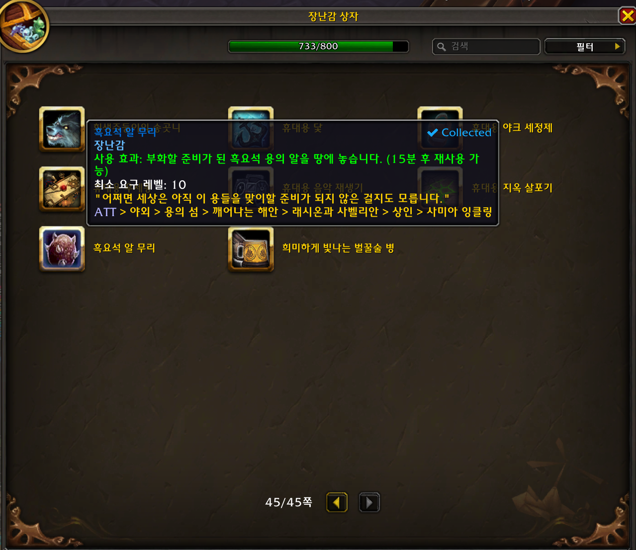 2023.01.14 흑요석 알 무리 획득 733번째 장난감