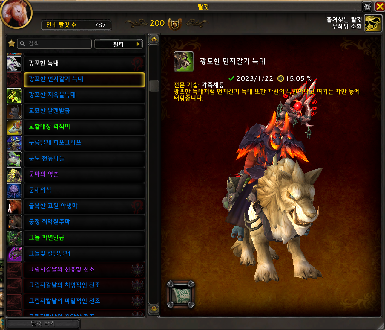 2023.01.22 광포한 먼지갈기 늑대 획득 787번째 탈것