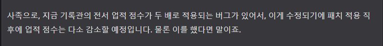 10.0.5가 되면서 업적점수가 20점이 감소되었습니다.