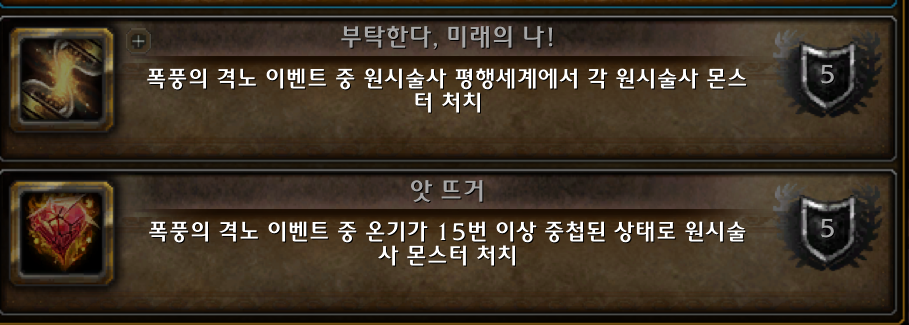 퀘스트에도 2개인데 10.0.5에 추가된 폭풍의 격노 이벤트에서 하는 업적인것 같습니다.
