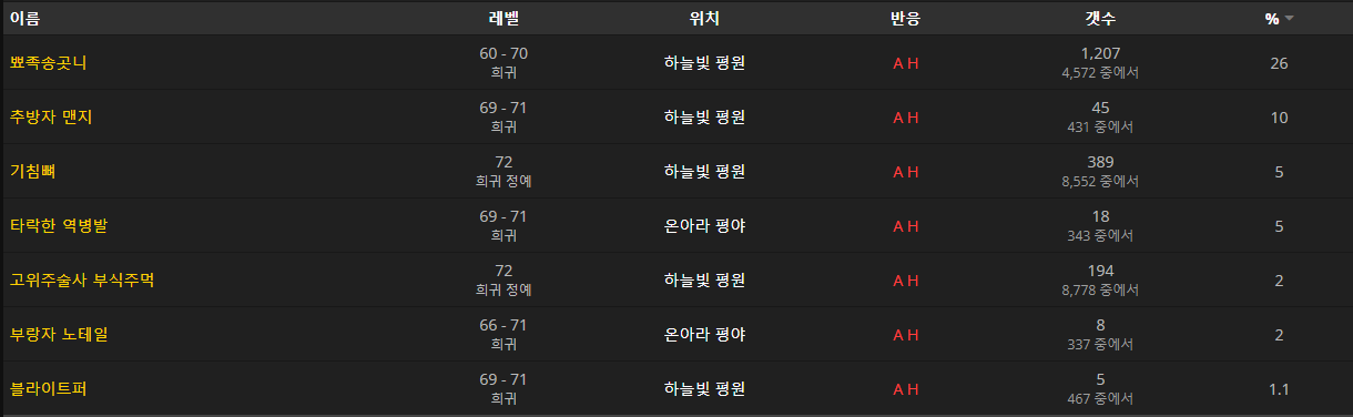 용군단 은테몹들이 드랍합니다. 오시골이 드랍률이 제일높네요.